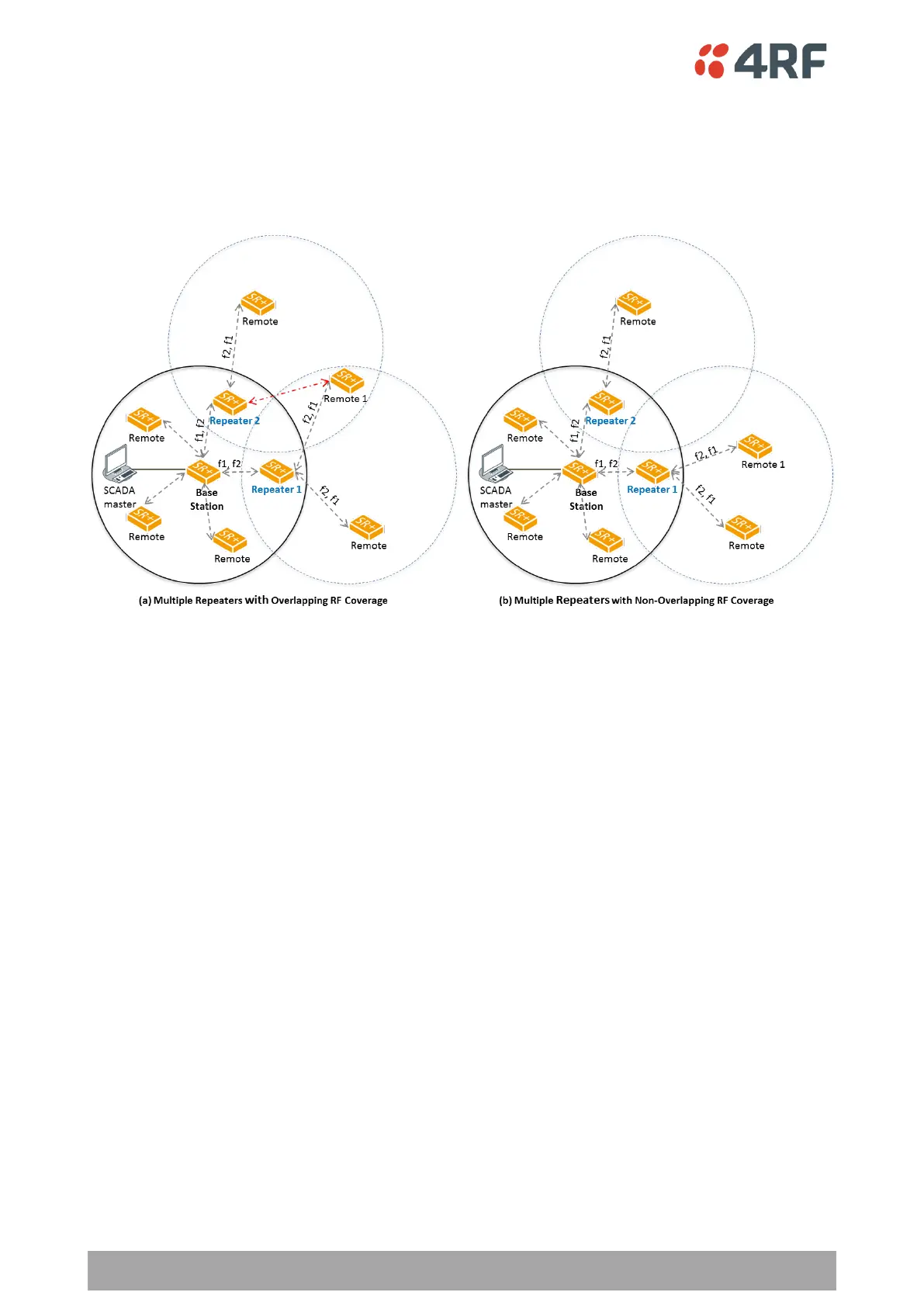 figure (a), where Remote 1 is in overlapped RF coverage with Repeater 1 and Repeater 2.