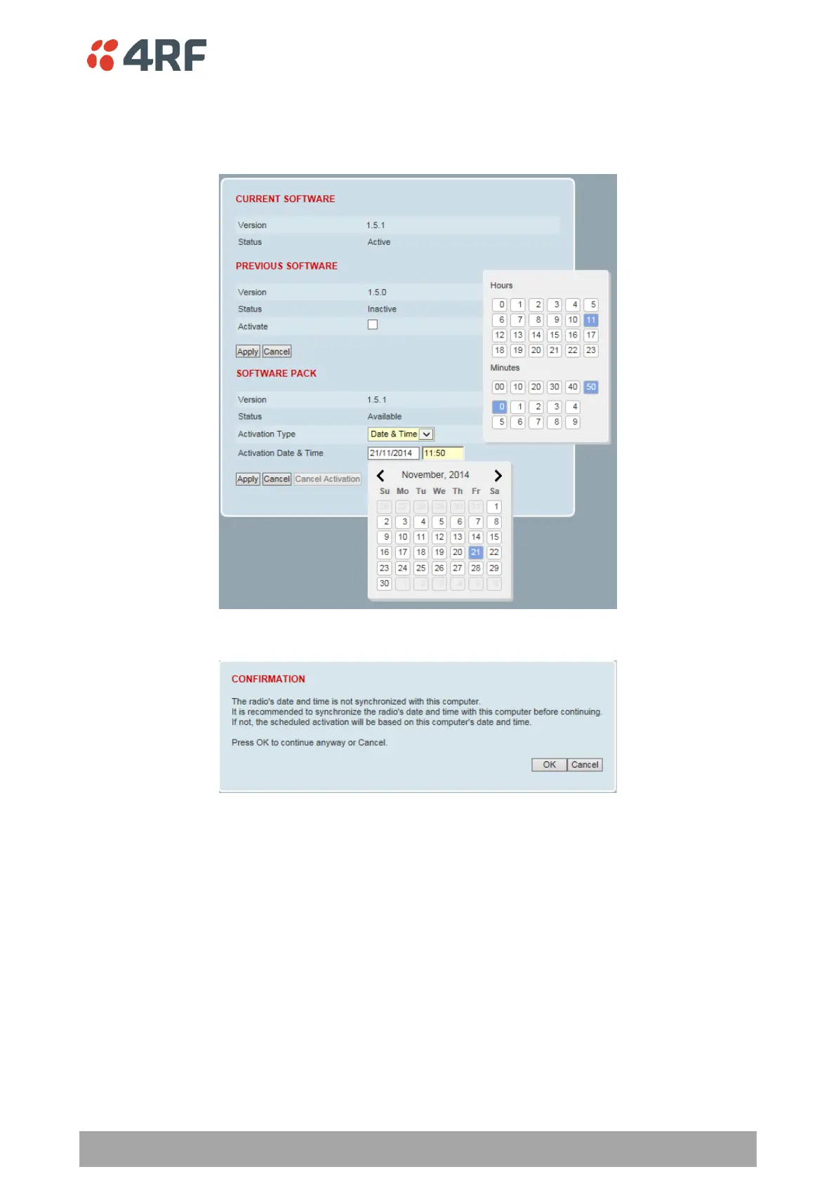 If the network base station radio date / time is not synchronized, you will get the following popup: