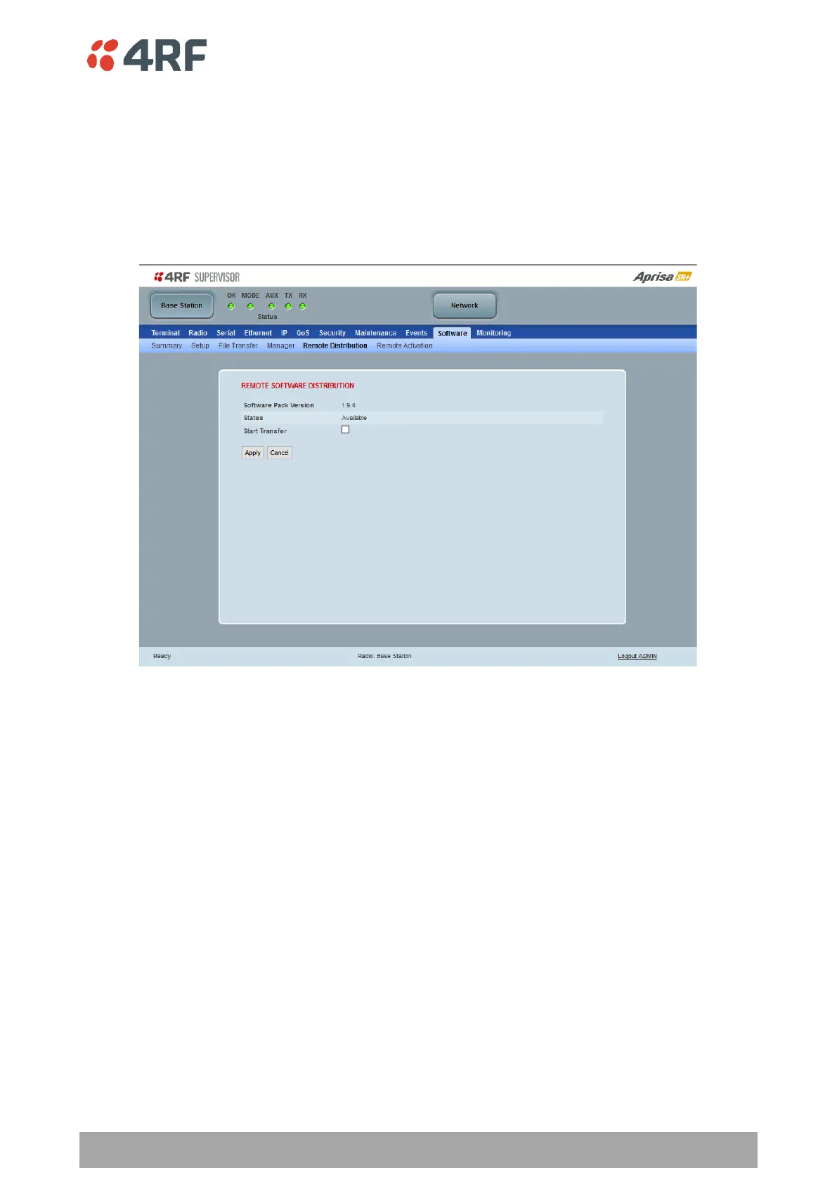 This page provides the mechanism to distribute software to all remote radios into the Aprisa SR+ network