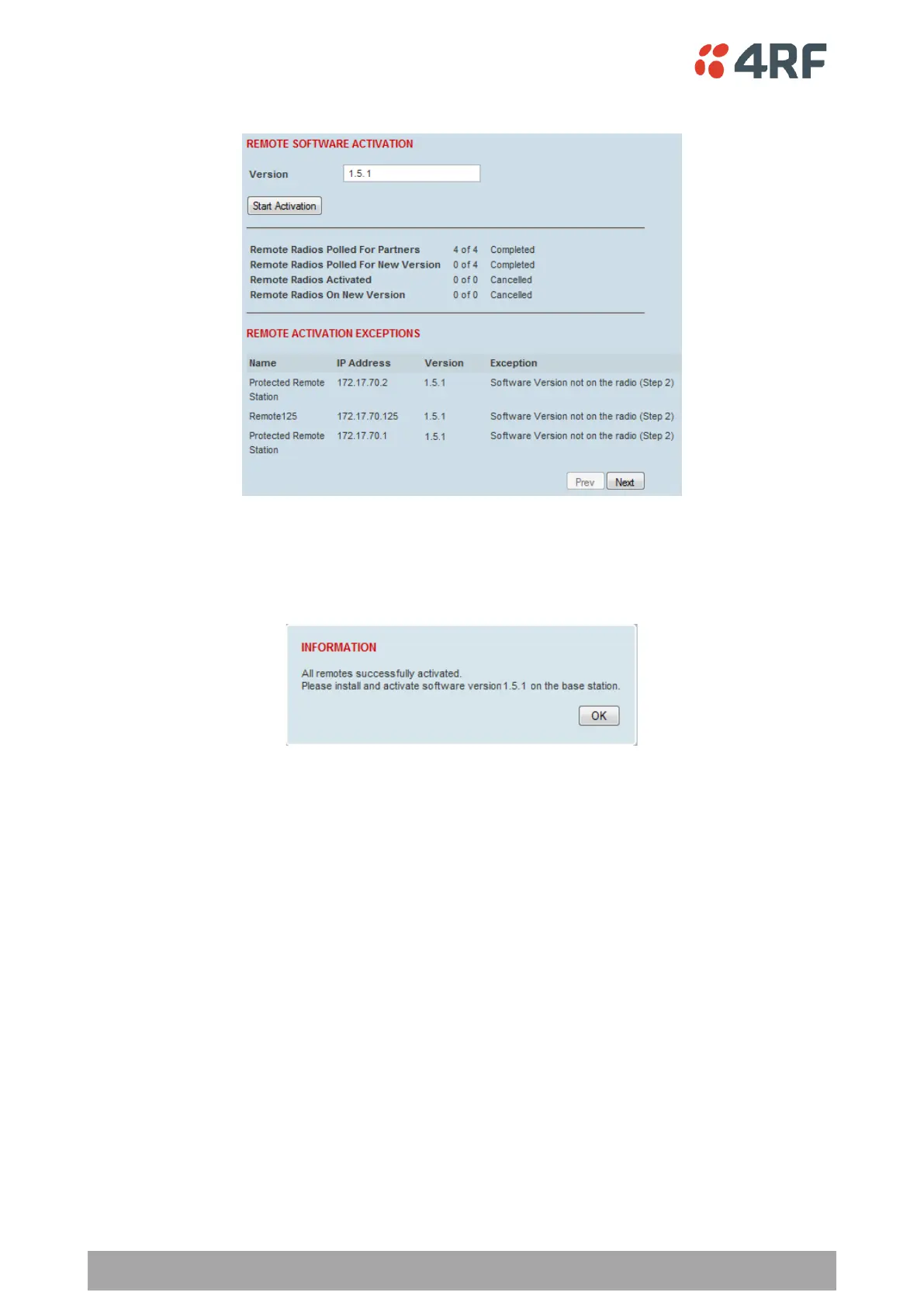 When all the remote radios have been activated, the base station radio must now be activated with (see