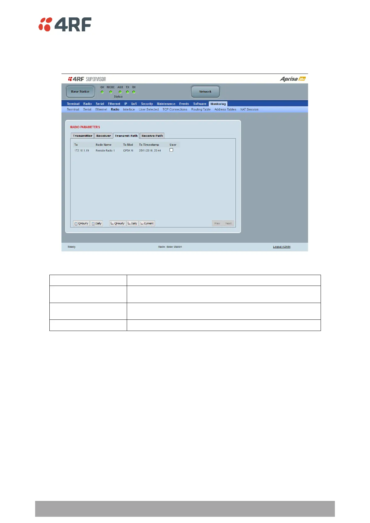 This page displays the current radio RF transmit path modulation setting to single or multiple destination