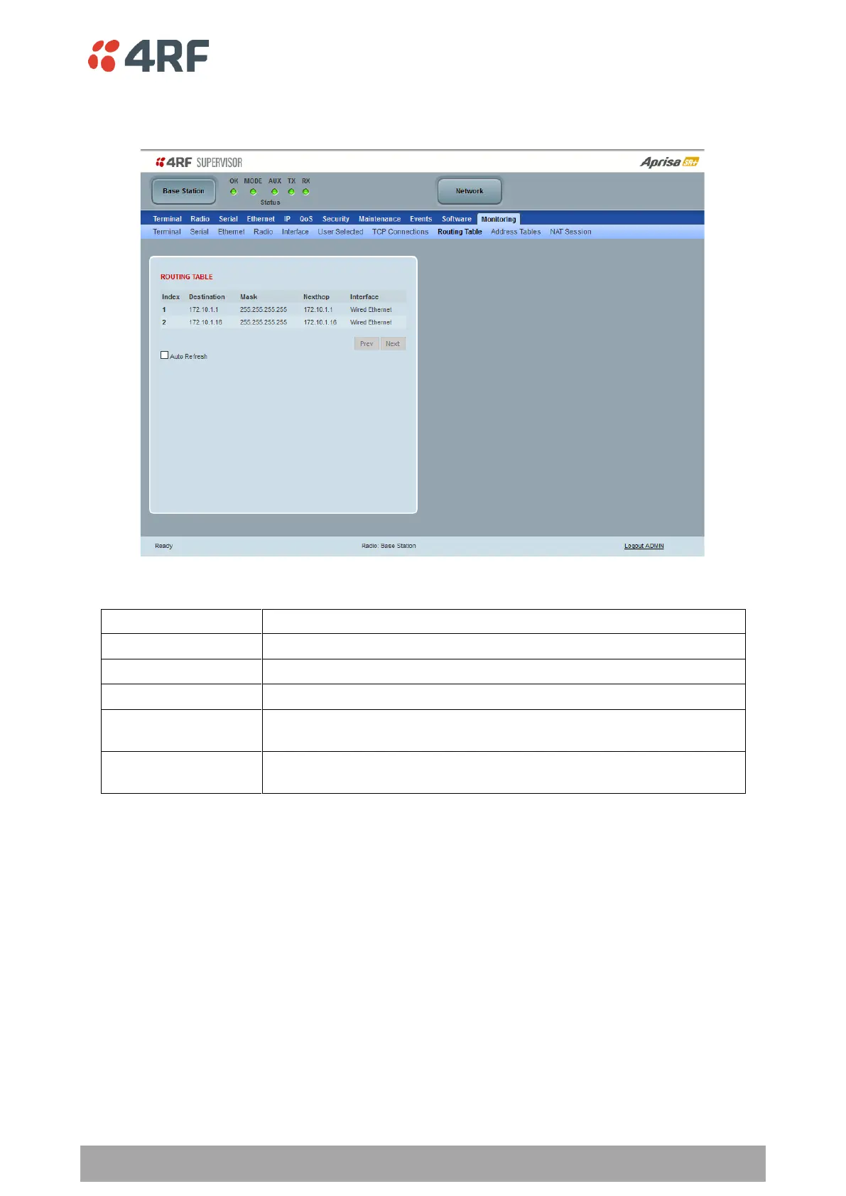 If the Auto Refresh option is ticked, the routing table will refresh every 12 seconds.