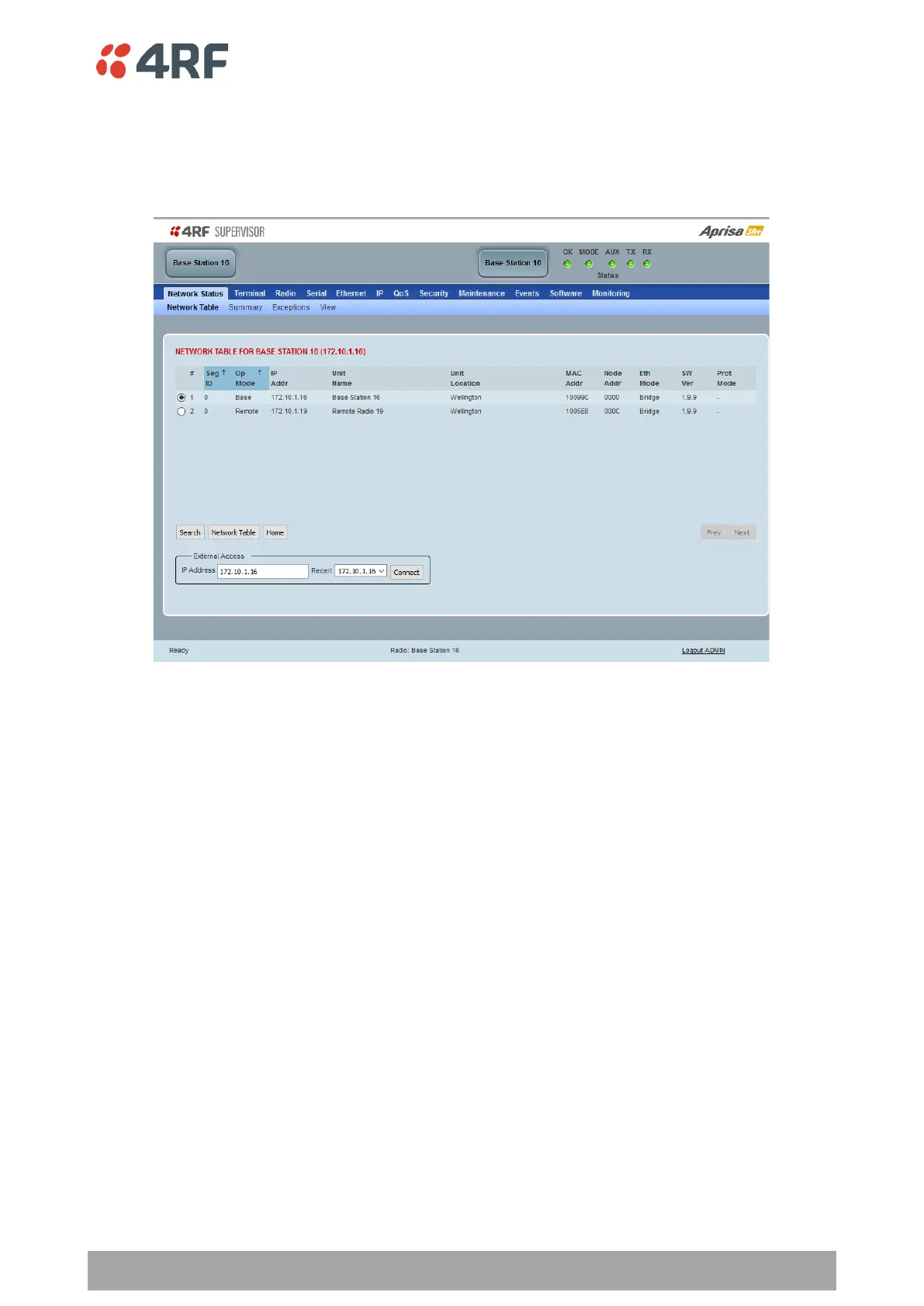 This Network Table is only available when the local radio is the base station i.e. SuperVisor is logged into