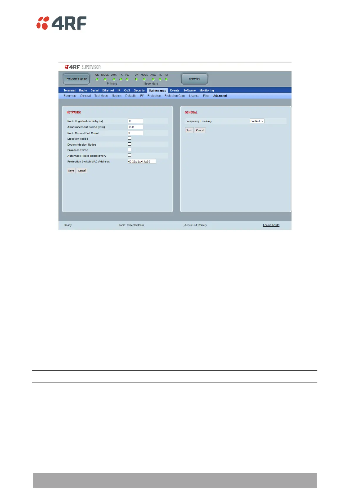 See āMaintenance > Advancedā on page 276 for parameter details.