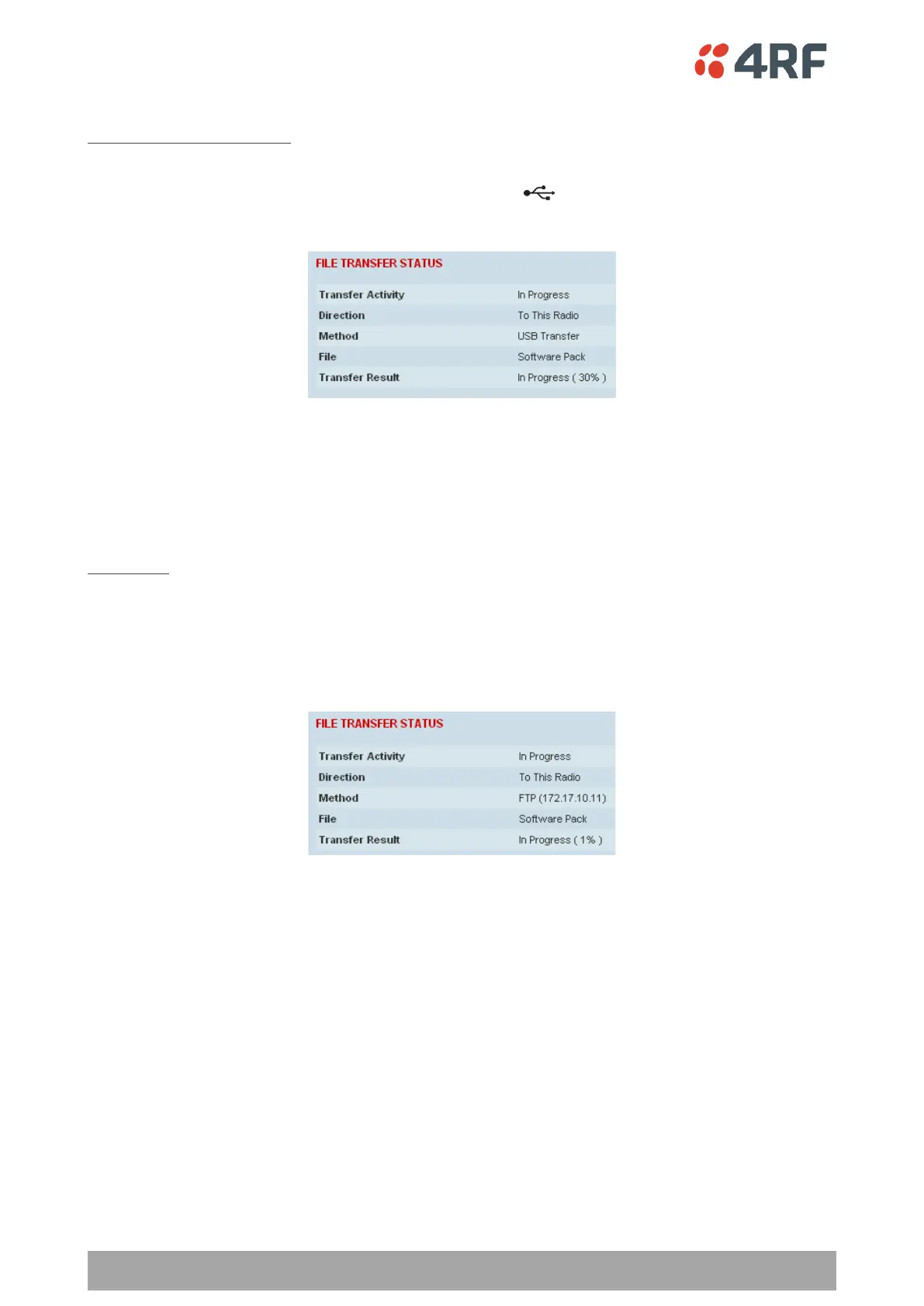 4. When the transfer is completed, remove the USB flash drive from the primary radio host port. If the