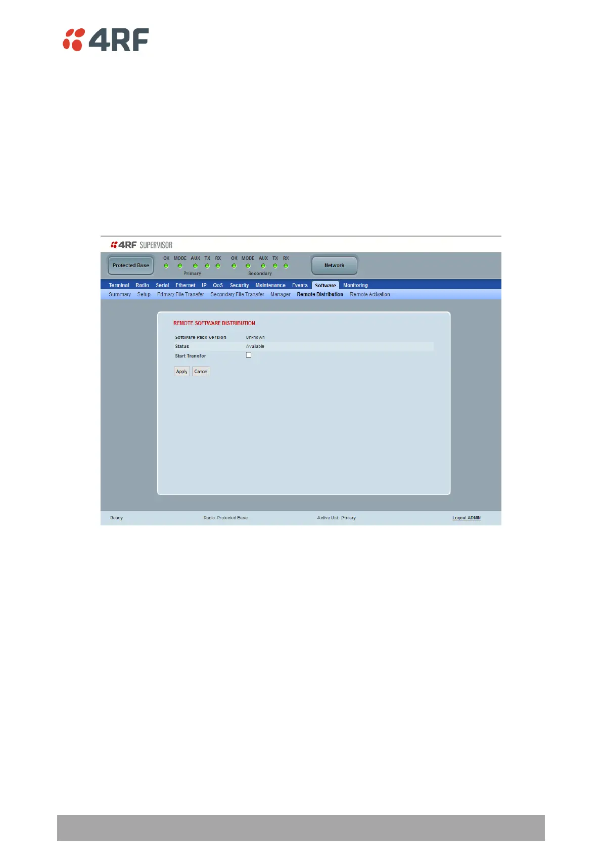 This page provides the mechanism to distribute software to all remote protected stations into the Aprisa