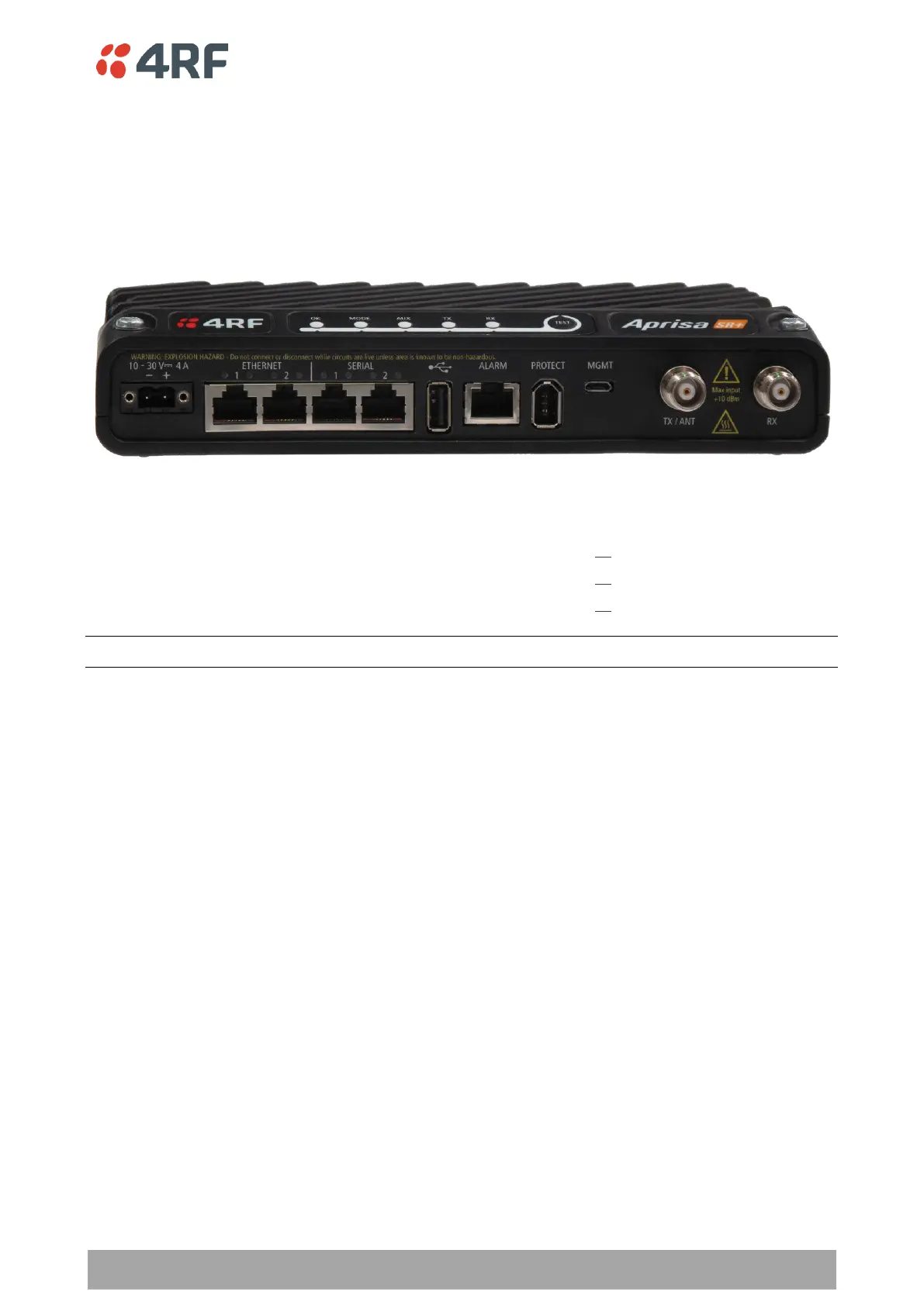 The standard Aprisa SR+ provides multiple interface port options for combinations of Ethernet and RS-232