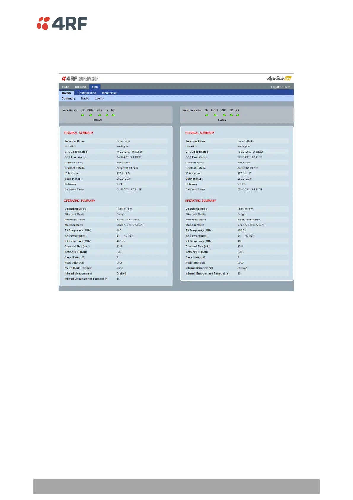 The following is the SuperVisor Link Details screen for a standard Point-To-Point radio: