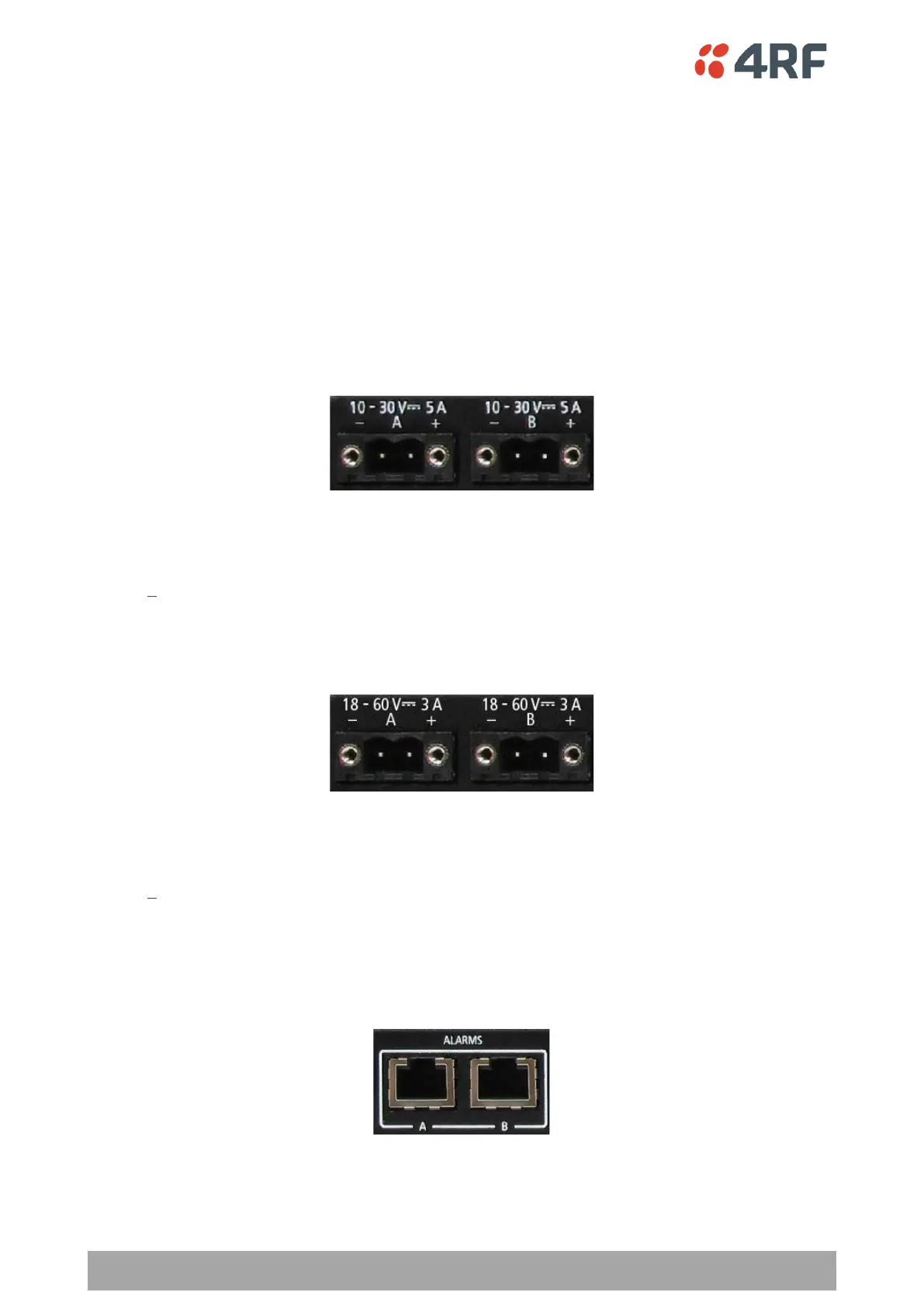 located on the protected station front panel. The A power input powers the A radio and the B power input