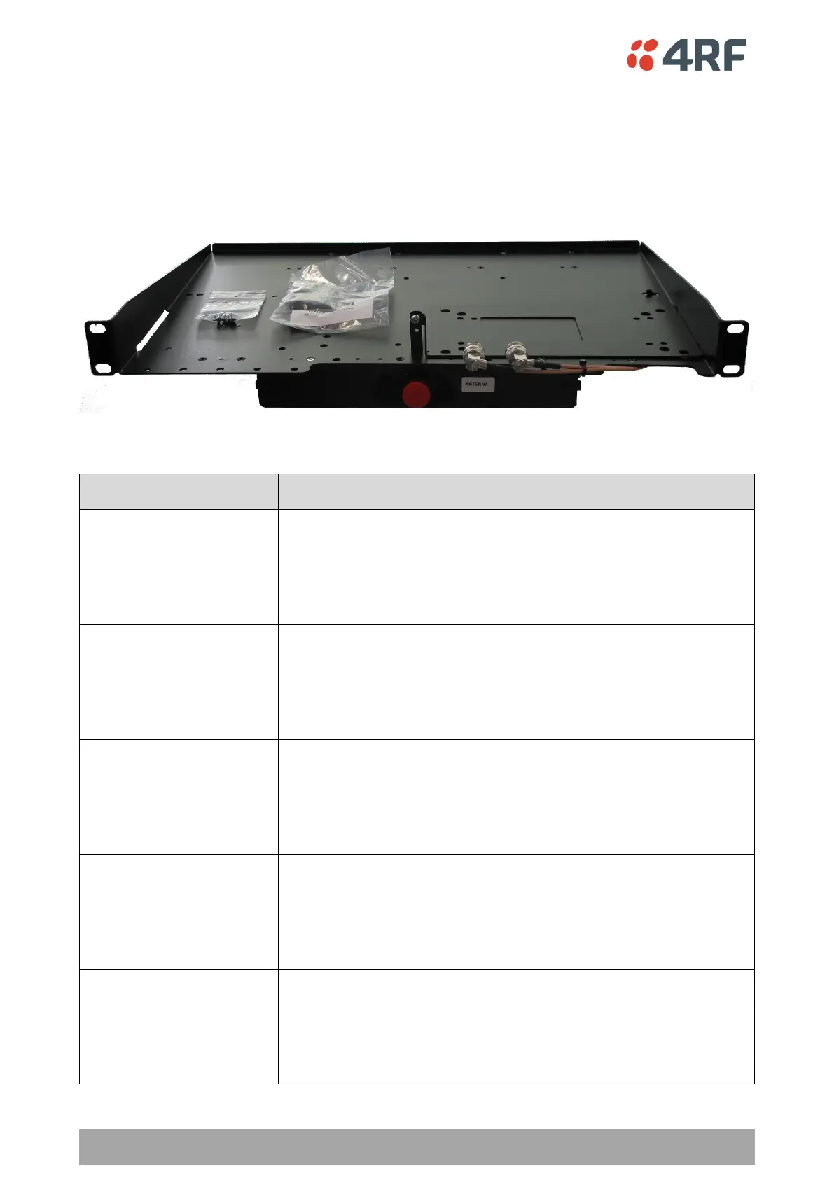 1x 1U 19" rack front mount shelf with duplexer mounting brackets and