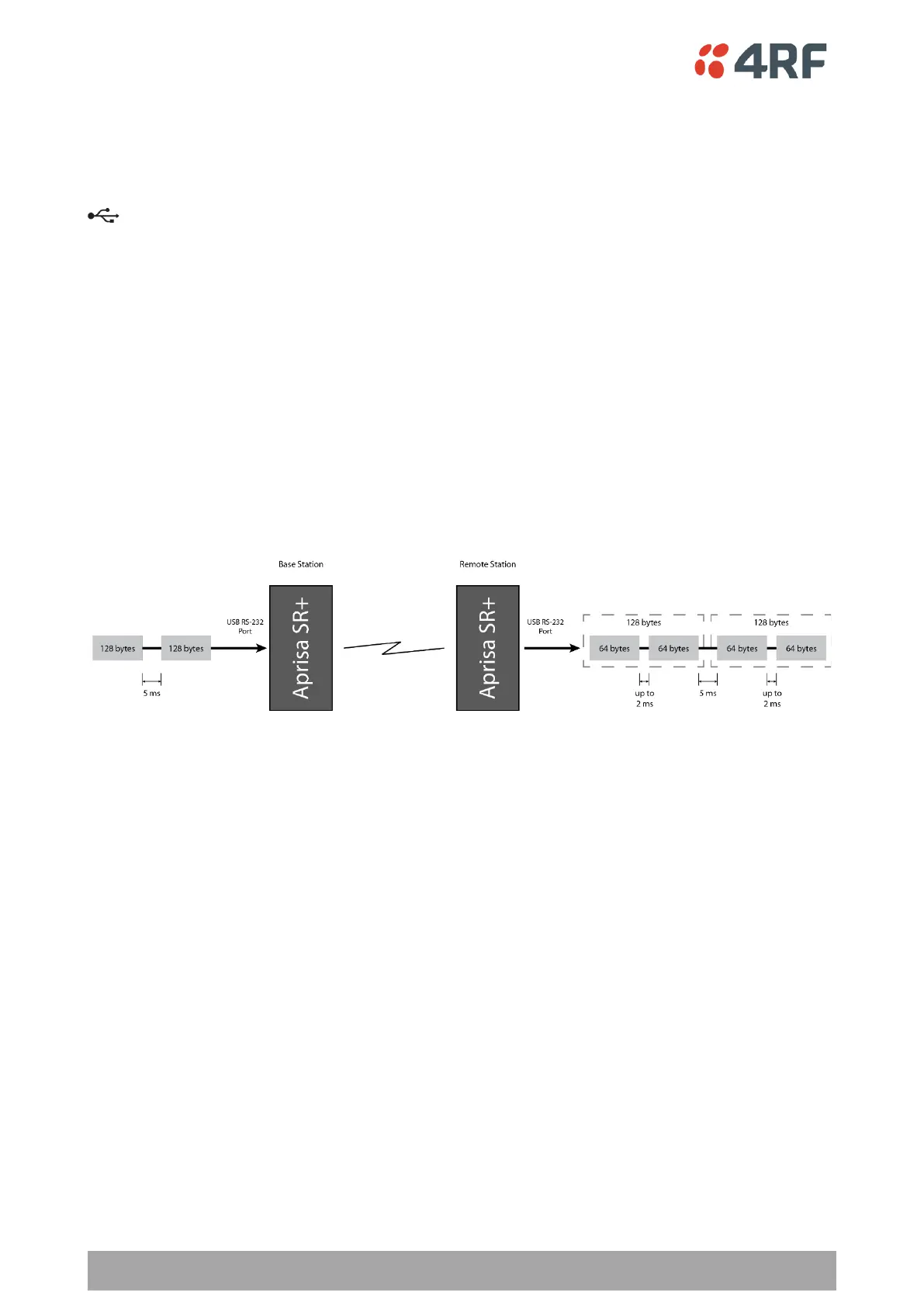 The USB serial converter buffers the received data frames into 64 byte blocks separated by a small inter-