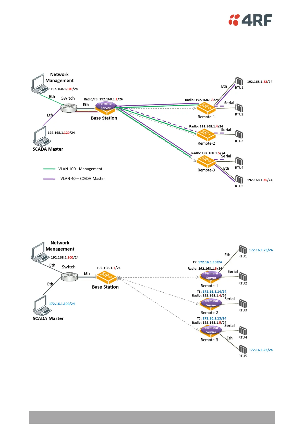 The following figure describes VLAN segregation of the IP Terminal Server and radio management where the