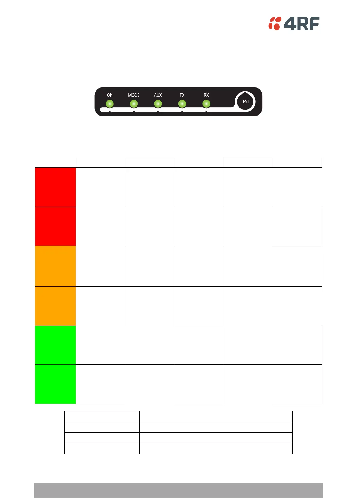 In normal radio operation, the LEDs indicate the following conditions:
