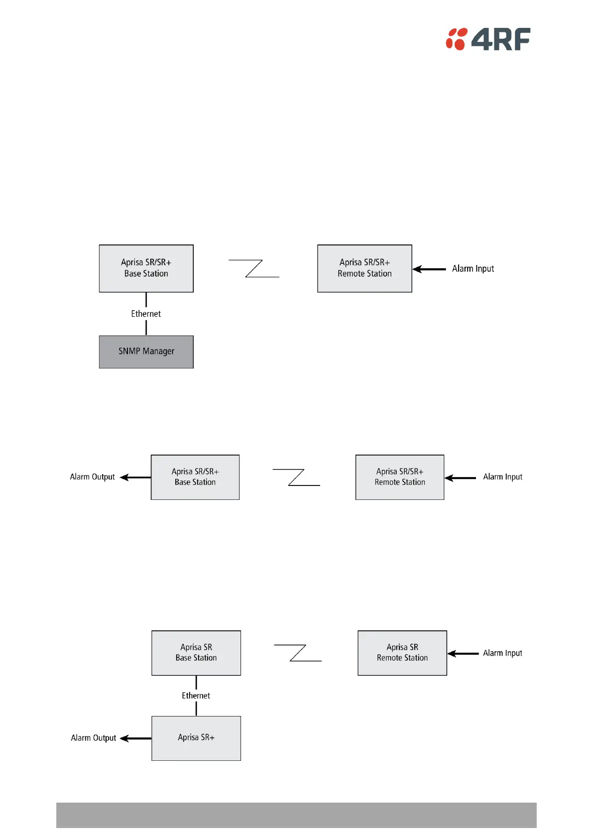 a hardware alarm output. As shown in the figure below, an Aprisa SR+ connected on the same IP network of