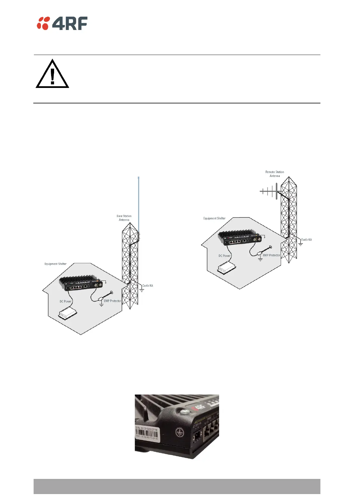 The Aprisa SR+ has an earth connection point on the top left and the top right of the enclosure. M4 8mm