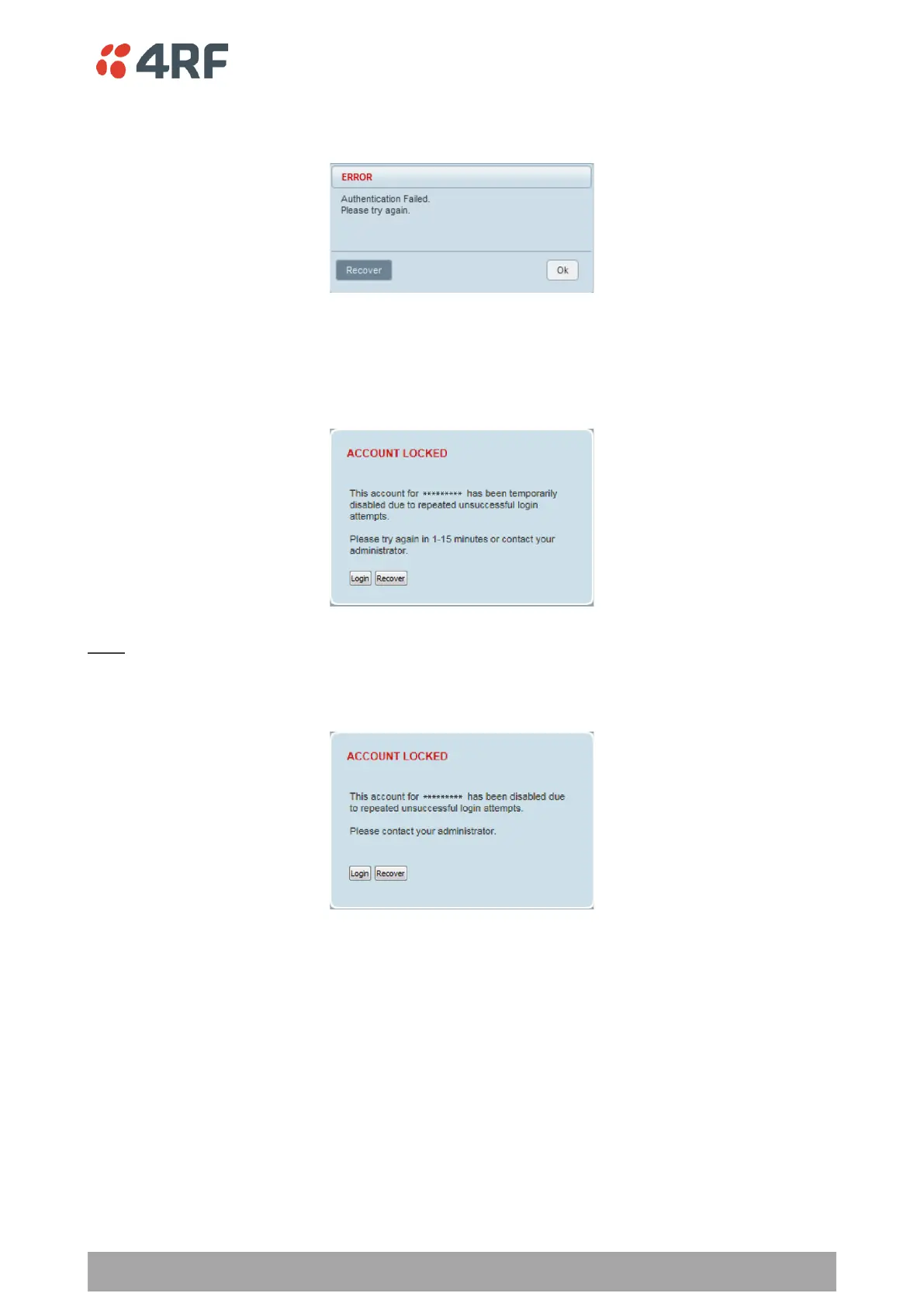 Security > Users ‘Login Protection Mode’ on page 240). If login protection is active and a login attempt failed
