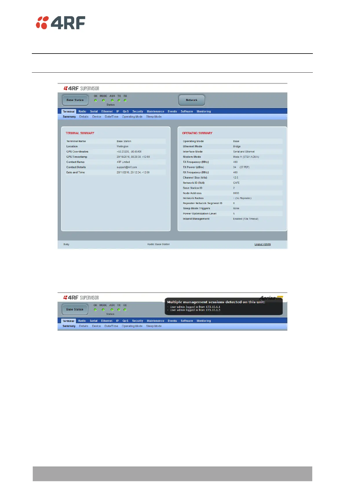 If there is more than one user logged into the same radio, the Multiple Management Sessions popup will