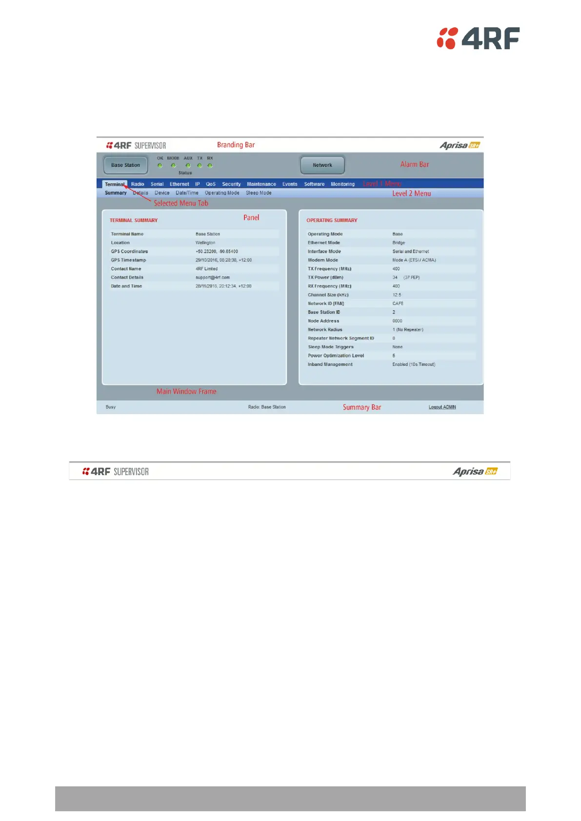 The following shows the components of the SuperVisor page layout for a standard radio: