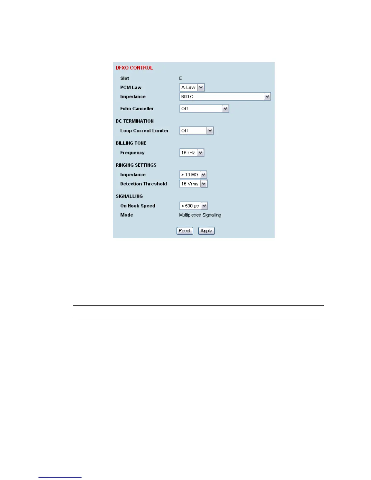 'Slot' shows the slot the DFXO interface card is plugged into in the terminal (A – H).