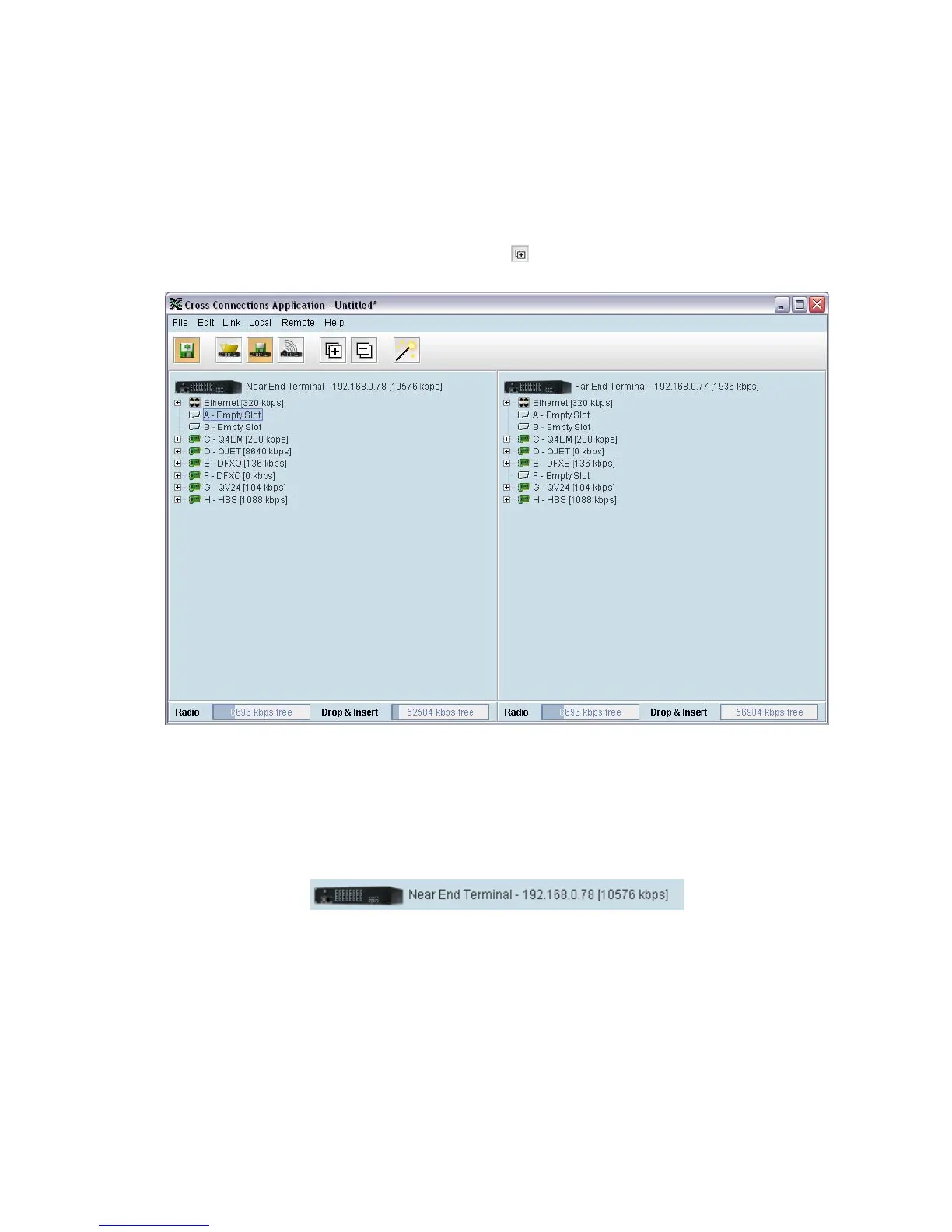 The current total assigned capacity (radio link and drop and insert) is shown (in kbit/s) beside the