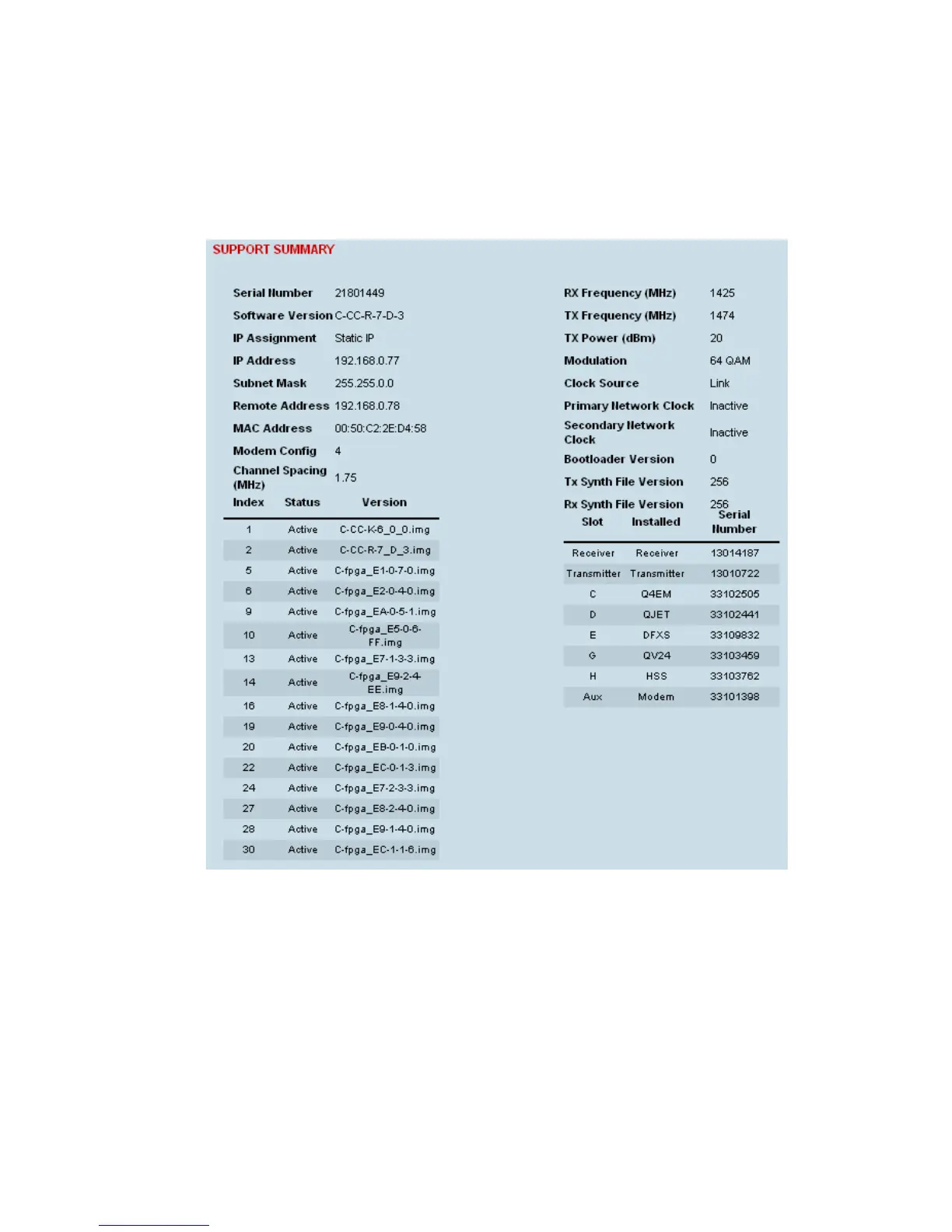 Select Link or Local or Remote > Maintenance > Support Summary.