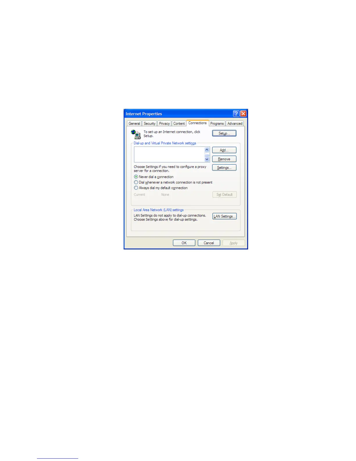 If your PC has previously been used with Dial-up connections, you may need to change your PC