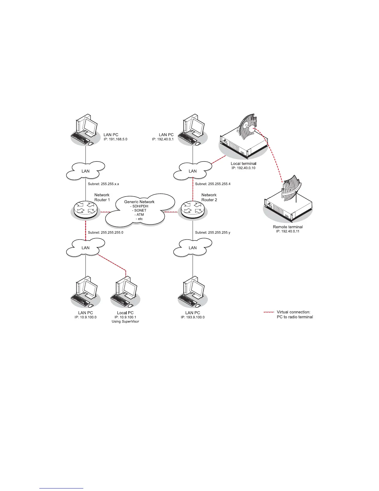The following diagram shows a link interconnected on a different subnet as the local PC used for