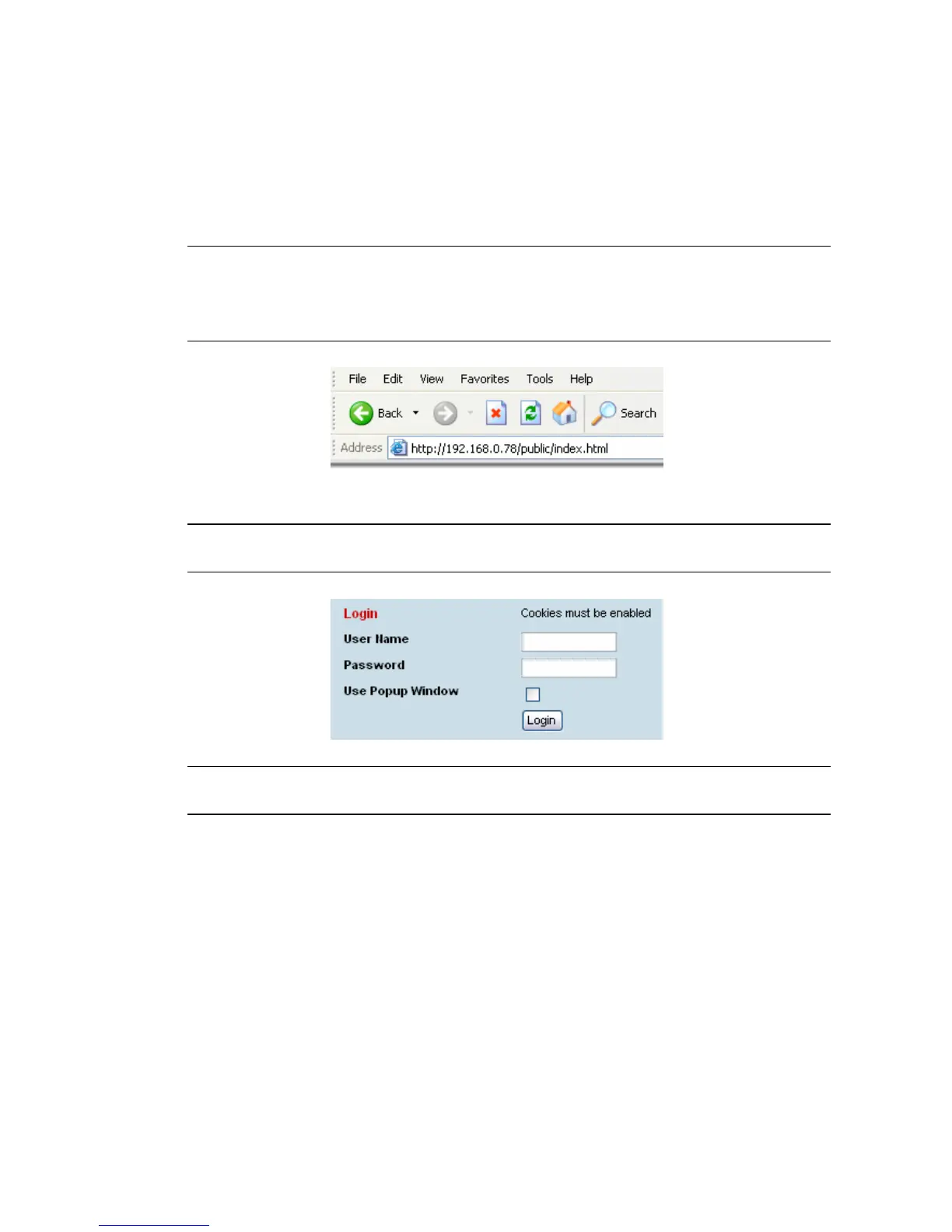 1. Open your web browser and enter the IP address of the terminal.