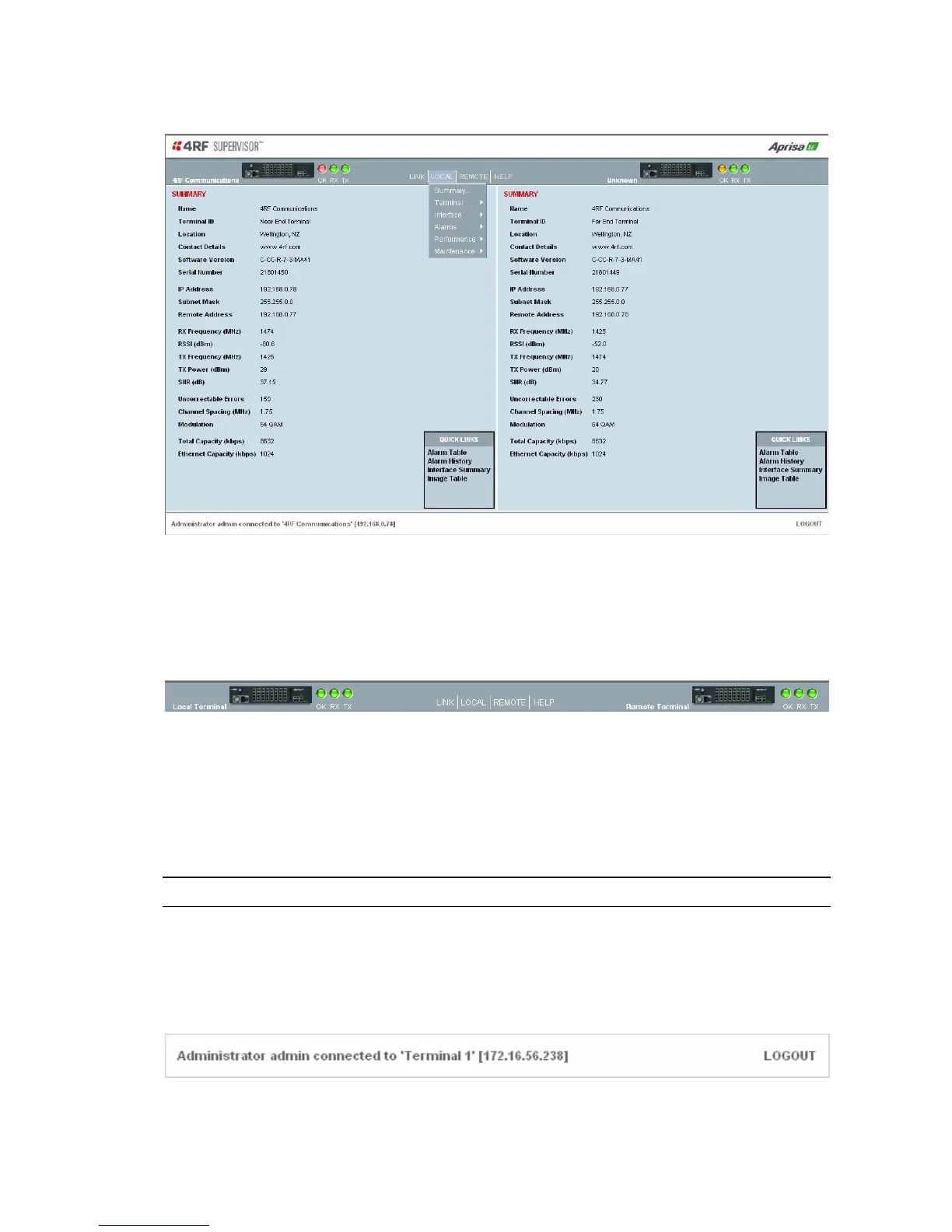 status indicators for both the local and remote terminals. The indicators reflect the status LED