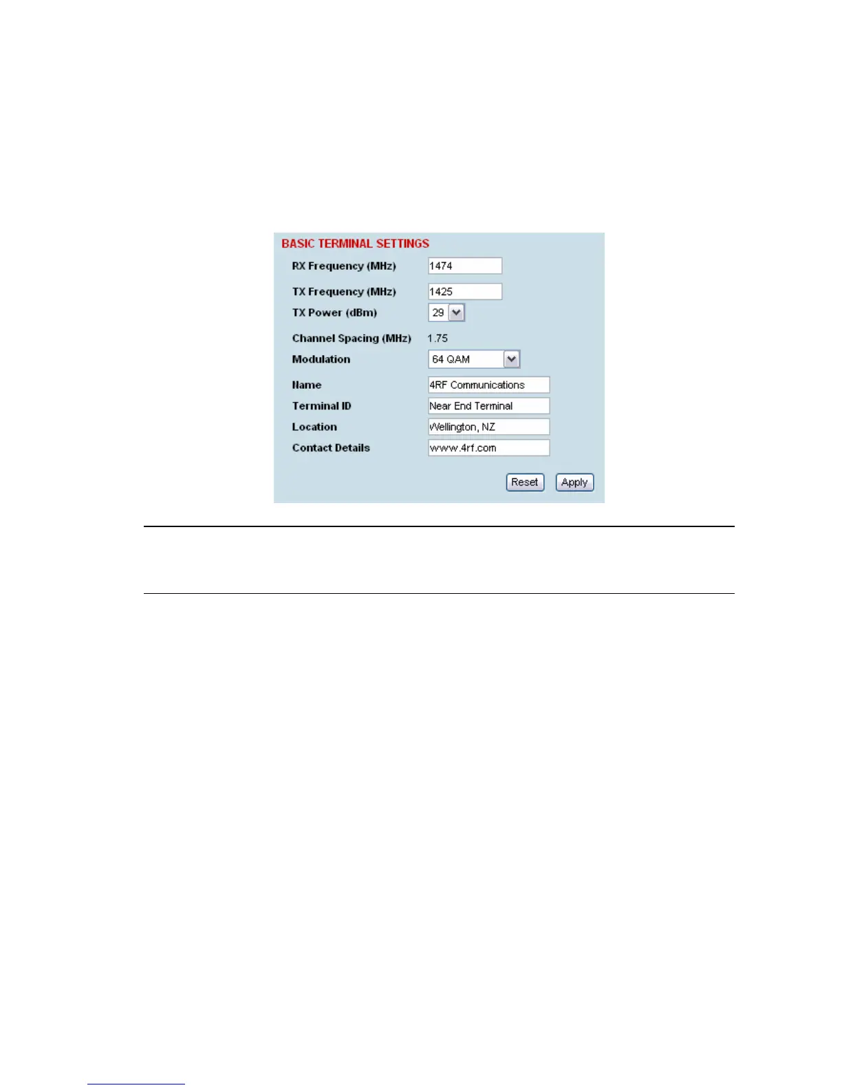 Note: Transmit frequency, transmit power, channel size, modulation and antenna polarization would