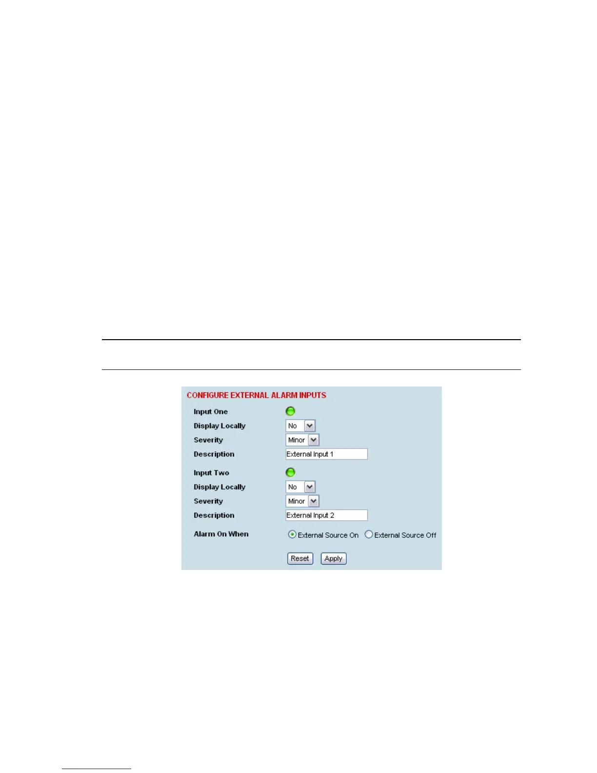 Select Link or Local or Remote > Alarms > Ext Alarm Inputs