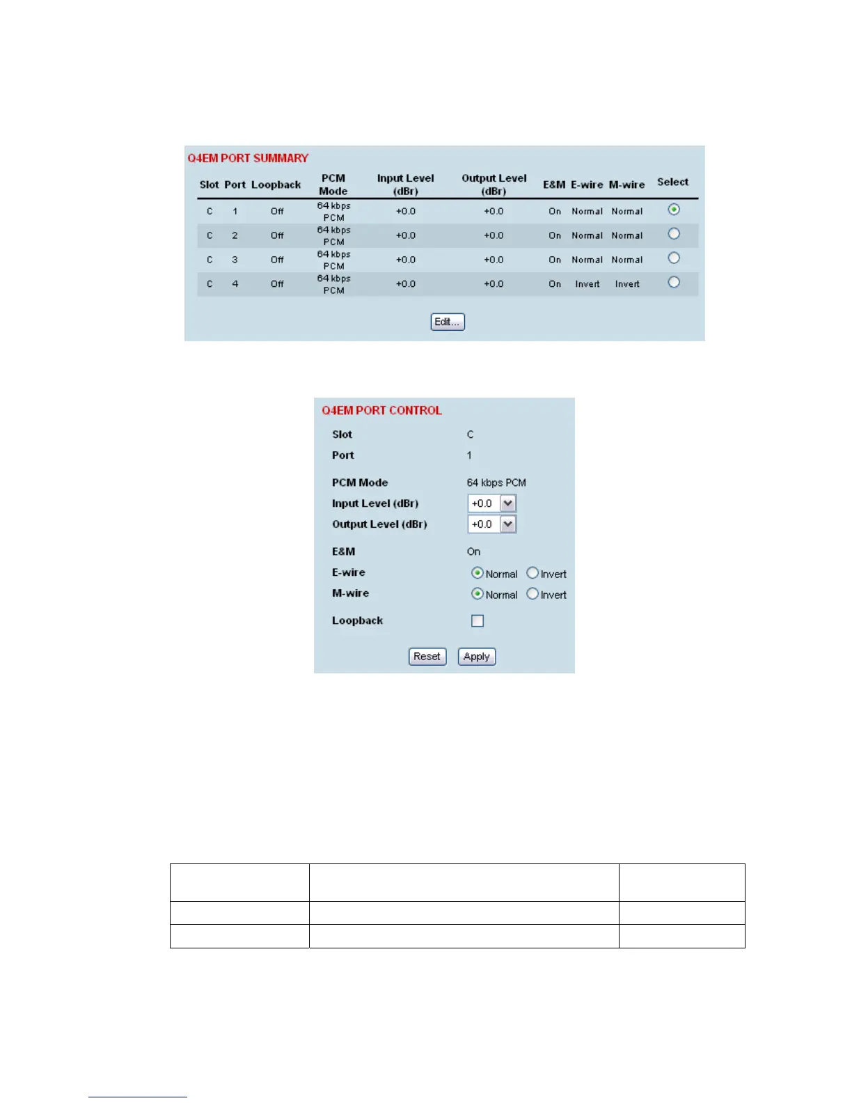 ‘E&M’ shows if the E&M signalling on the port has been activated by the cross connect.