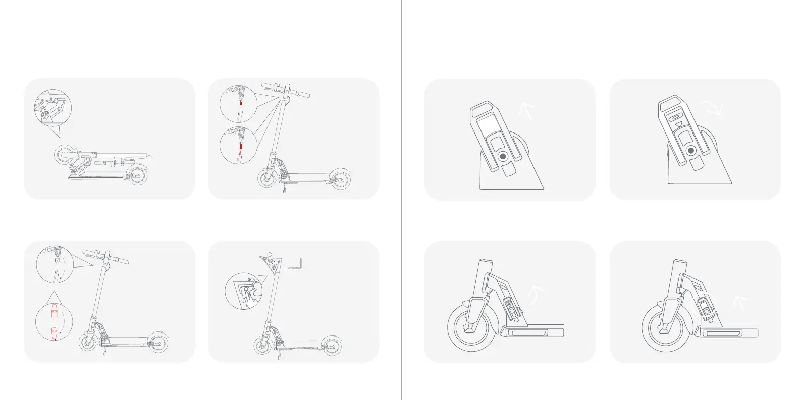 3.Lift the head of the scooter.4.Close the folding handle upwards.