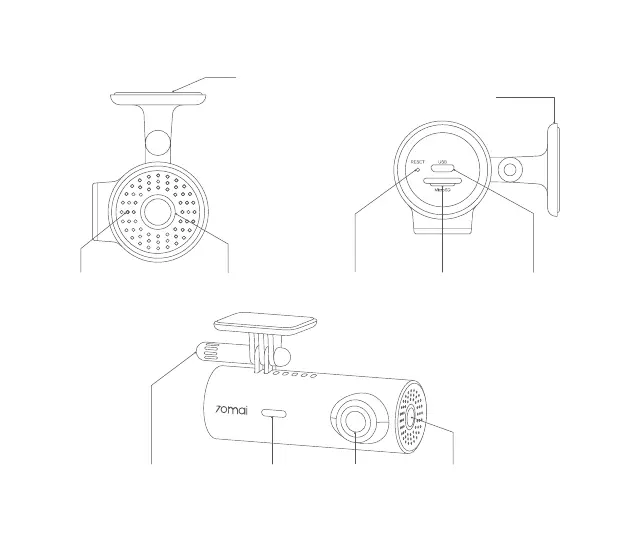 Microphone Indicator Reset button MicroSD card slot USB connector
