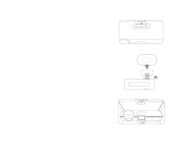 스티커의 중앙에 붙입니다. 대시 캠 몸체가 지면과 평행해야
