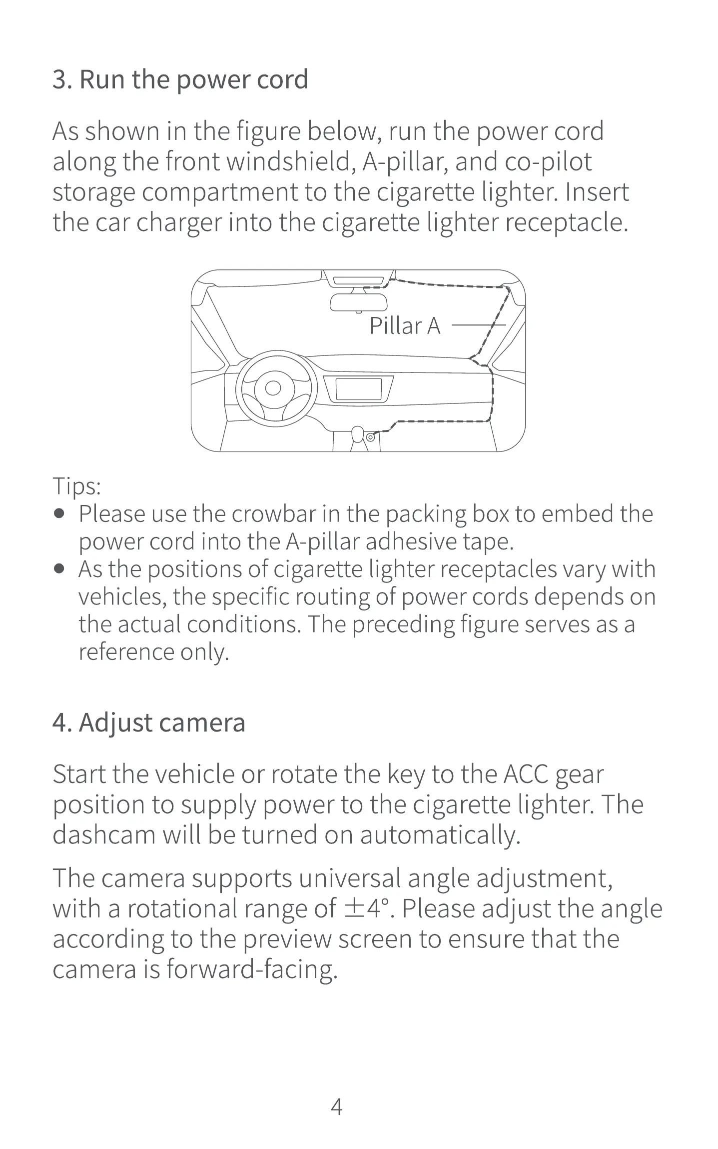 dashcam will be turned on automatically.