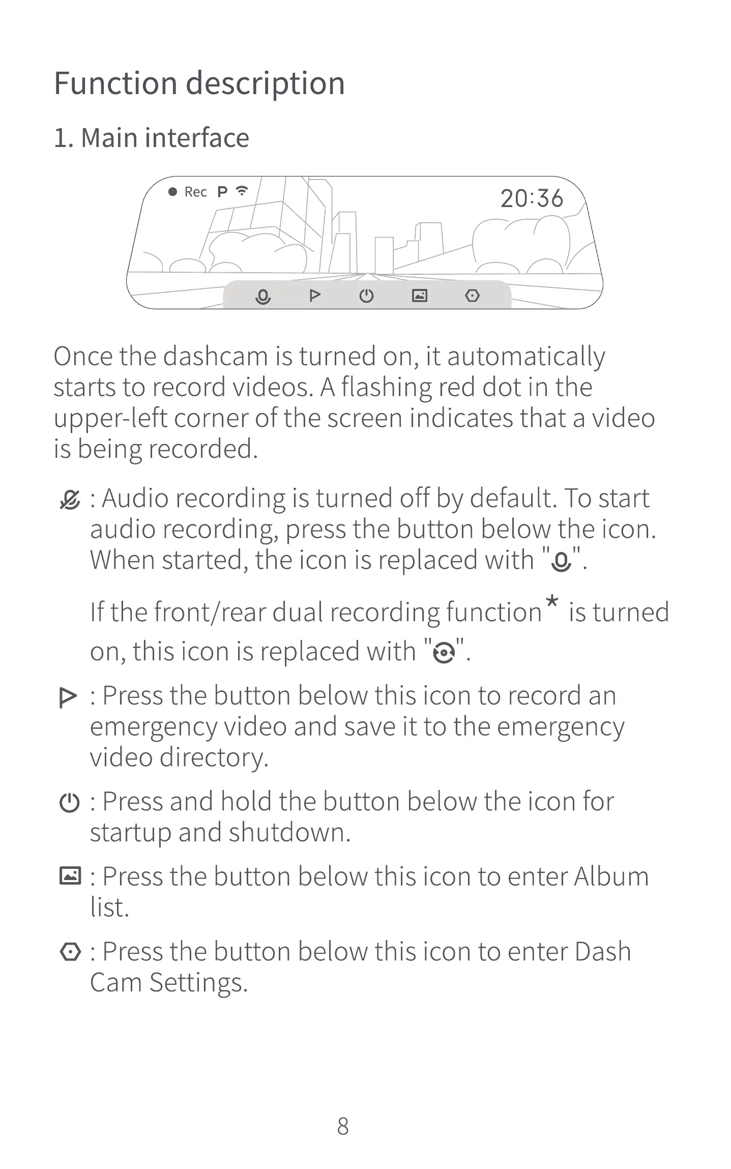 Once the dashcam is turned on, it automatically