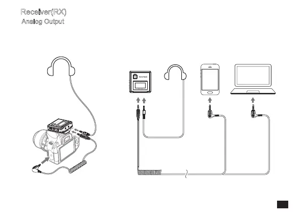 Connect the camera and receiver via the 3.5mm TRS-TRS audio cable; connect the phone/computer and