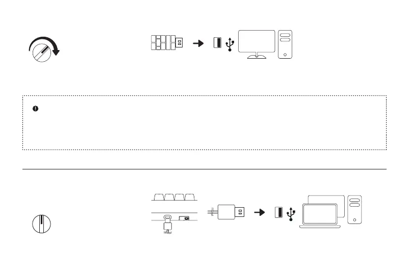 1. Turn the Mode switch to OFF. 2. Connect the keyboard to the USB port of your device and wait till the keyboard is successfully