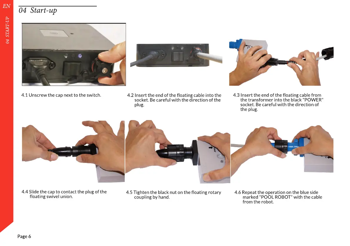 4.1 Unscrew the cap next to the switch. 4.3 Insert the end of the floating cable from
