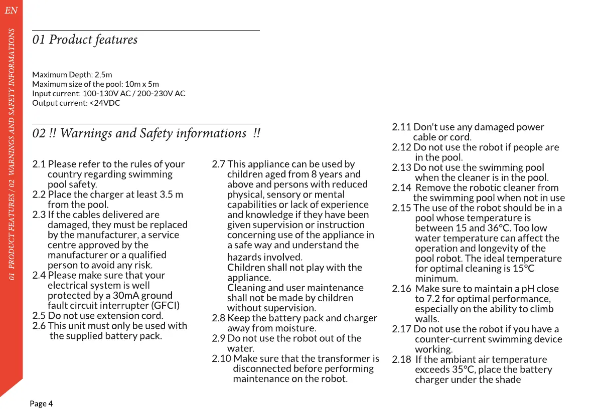 01 PRODUCT FEATURES / 02 WARNINGS AND SAFETY INFORMATIONS