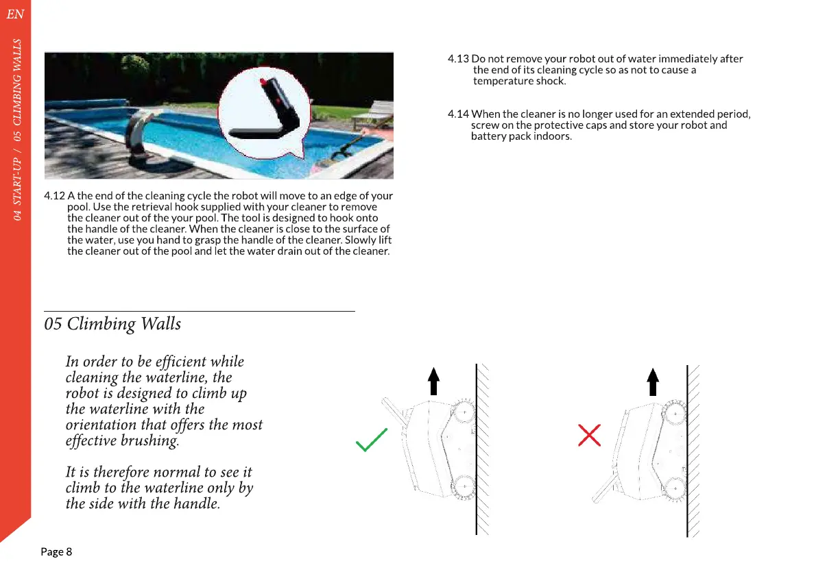 4.13 Do not remove your robot out of water immediately after