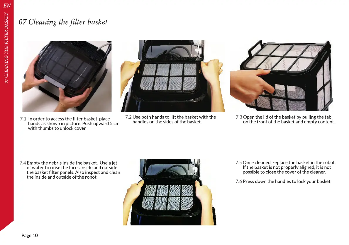 7.5 Once cleaned, replace the basket in the robot.