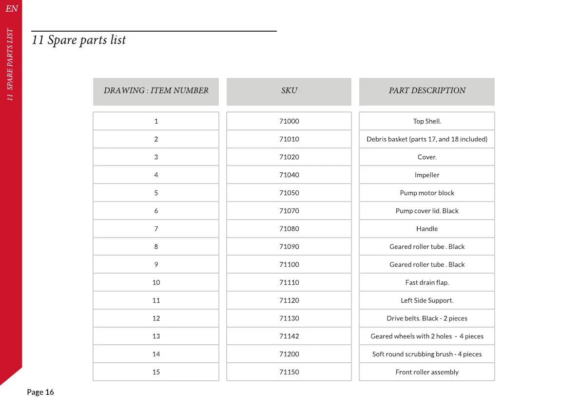 DRAWING : ITEM NUMBER SKU PART DESCRIPTION