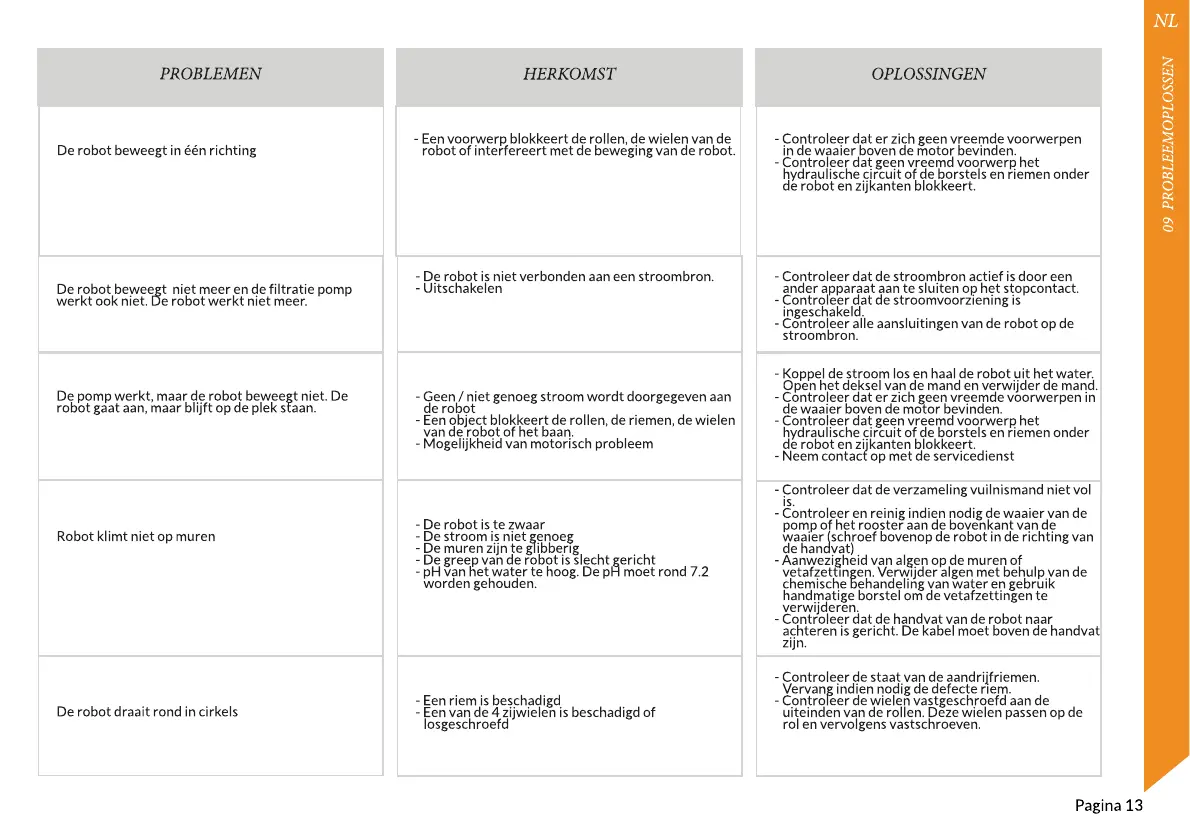 De robot beweegt niet meer en de filtratie pomp