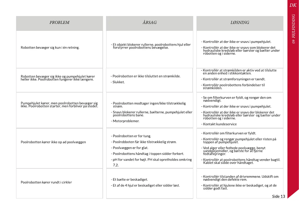 - Poolrobotten modtager ingen/ikke tilstrækkelig