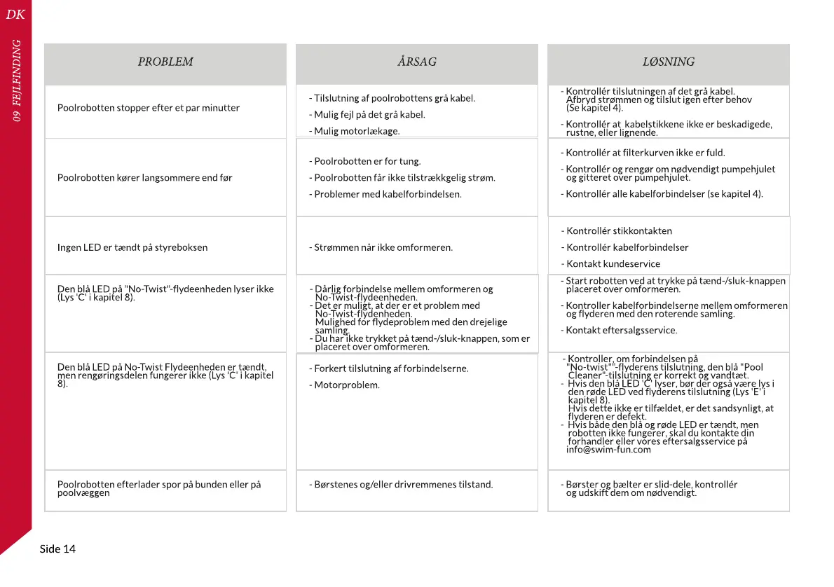 - Poolrobotten får ikke tilstrækkgelig strøm.