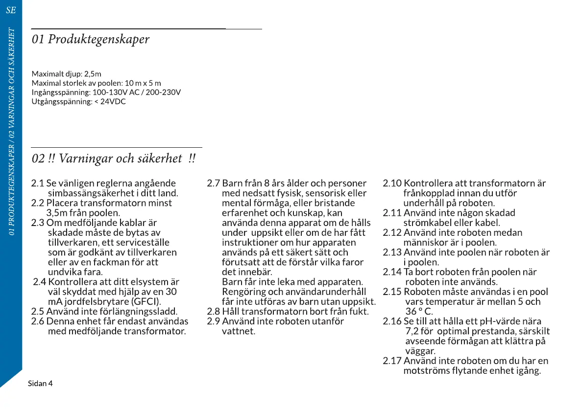 01 PRODUKTEGENSKAPER / 02 VARNINGAR OCH SÄKERHET