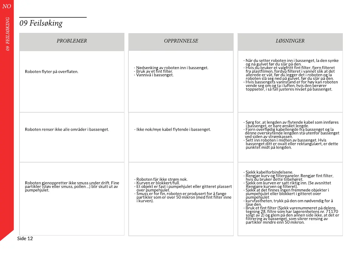 - Hvis bassengets vannstand er for høy kan roboten