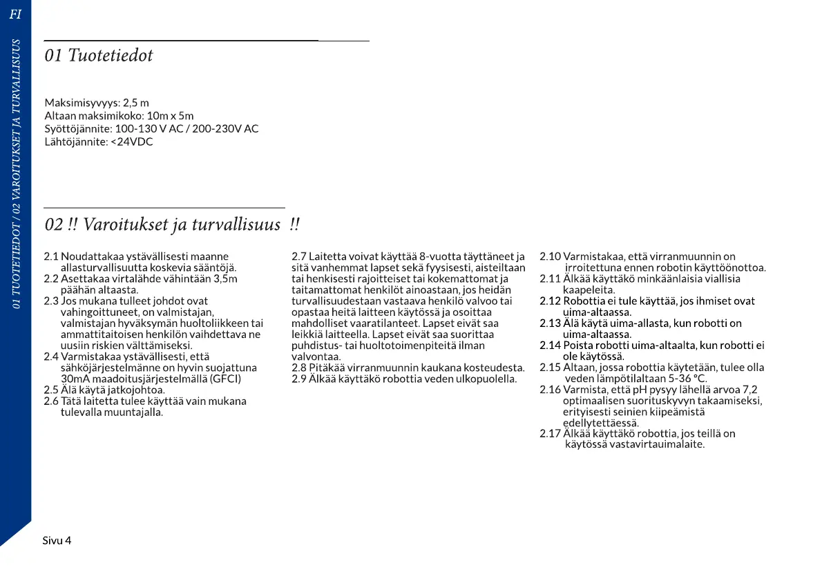 2.9 Älkää käyttäkö robottia veden ulkopuolella.